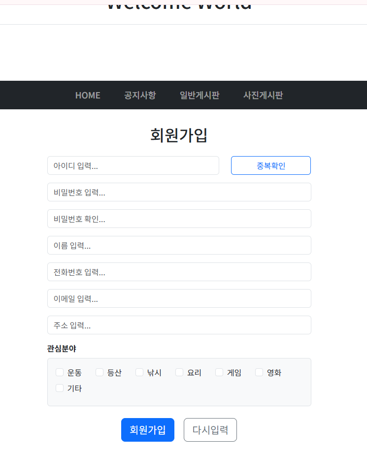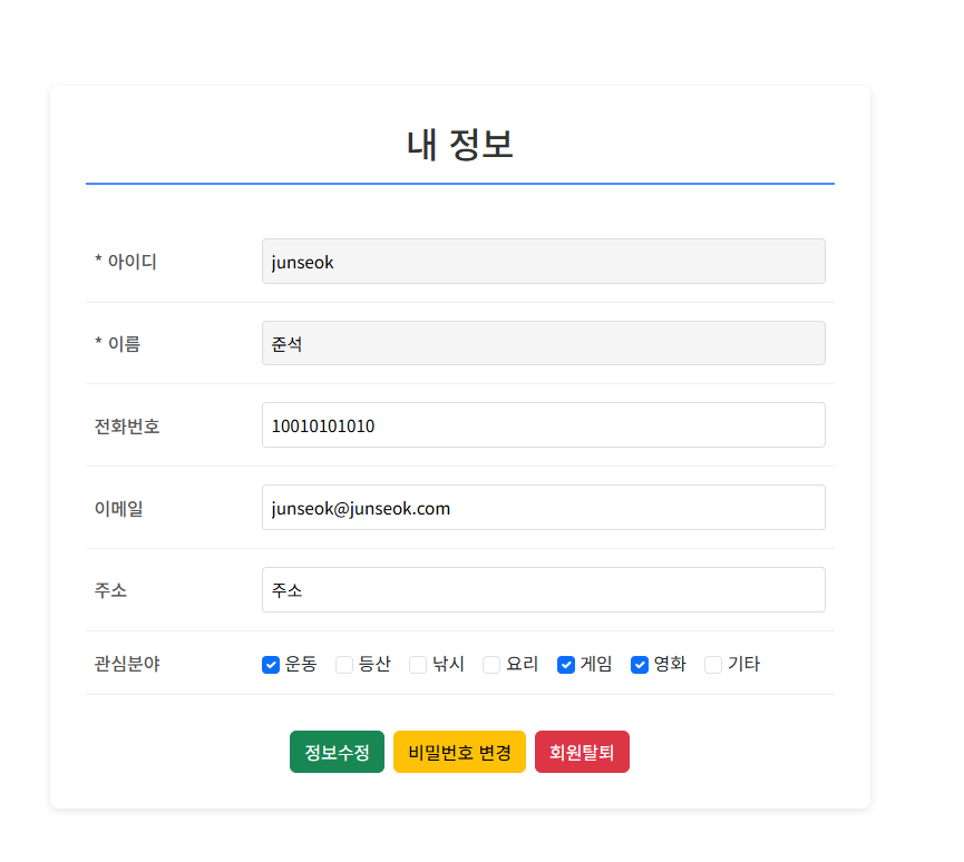 - 기능 : 로그인, 회원가입, 게시글, 마이페이지 기본정보 추가/삭제/수정